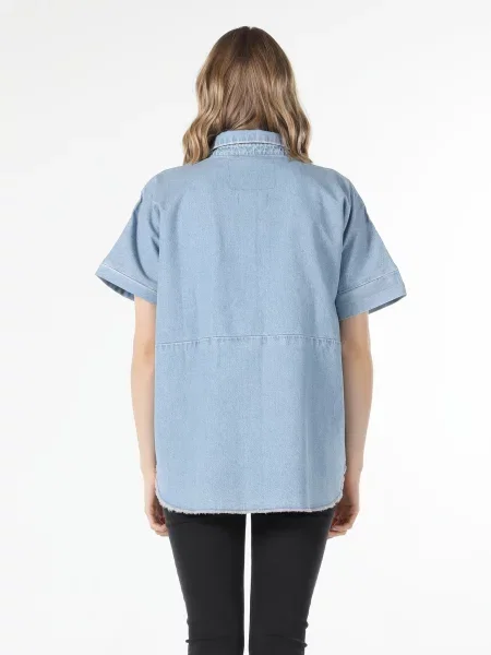 Женские джинсовые рубашки с коротким рукавом