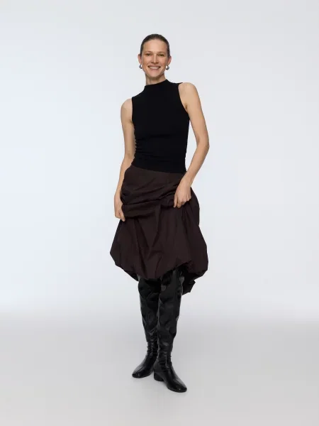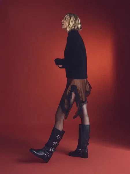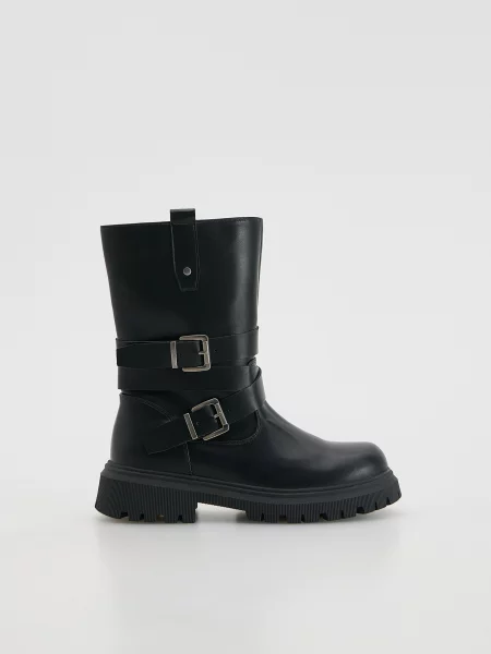 Стилистически коллекция движется от сдержанного минимализма к более уверенным акцентам, в ней легко найти и утилитарные дутики, и элегантные ботфорты, а пример тёплых моделей можно увидеть среди женские дутики Reserved.