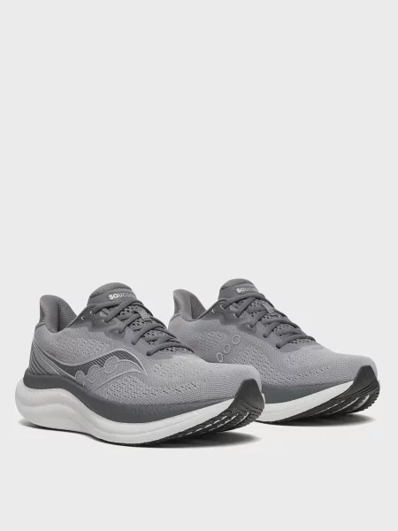 Чоловічі кросівки Saucony охоплюють дорожні тренери, гоночні моделі та трейлові рішення, де помітна увага до геометрії перекату і пінових систем PWRRUN/PWRRUN+; візуально силуети грають на балансі функції й ретро-деталей.