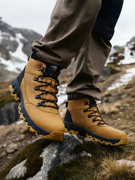 Челсі з еластичними вставками зручні для офісу й поїздок: їх легко взувати, і з пальтом вони виглядають особливо зібрано. Високі шнуровані пари краще фіксують стопу, тому пасують для холоду, довгих прогулянок і днів, коли темп не сповільнюється. Коричневі чоловічі зимові черевики варто брати з підкладкою з вовни або сучасного утеплювача та рельєфною підошвою. Демісезонні — з мембраною або щільною шкірою.
