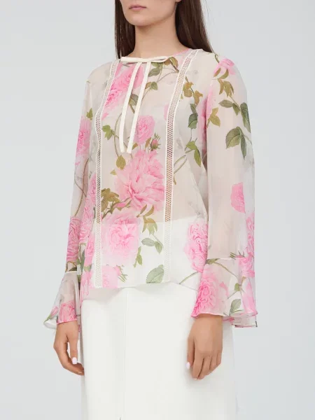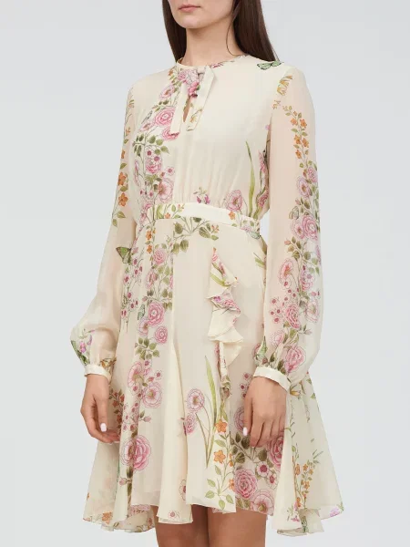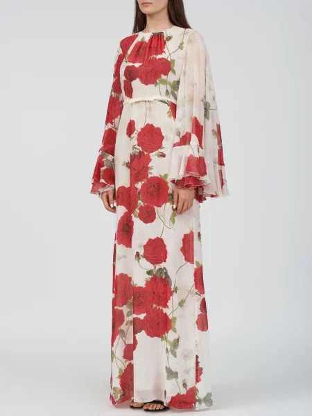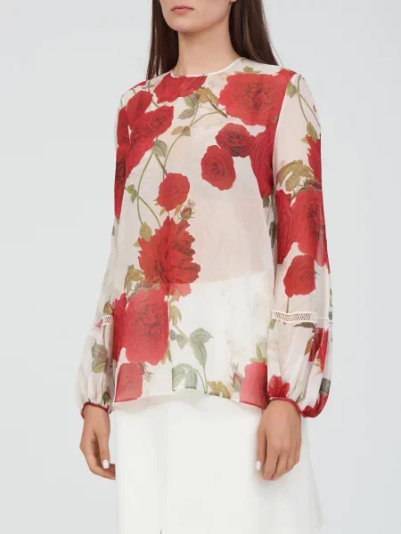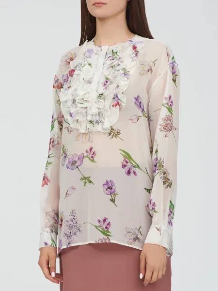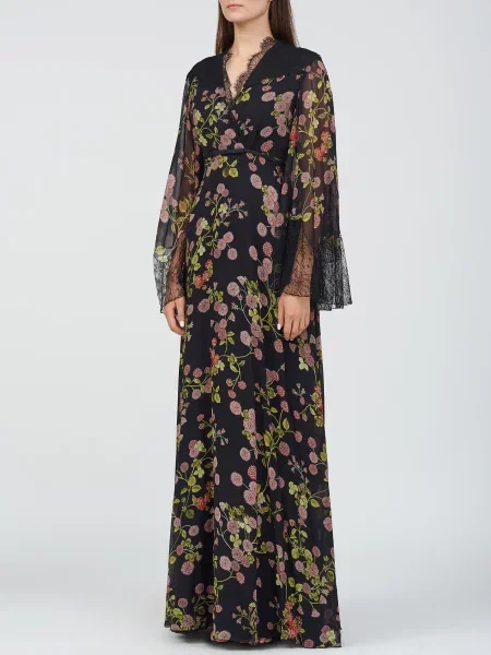 Giambattista Valli Пальто на хутрі в квітковий візерунок з хутром лисиці