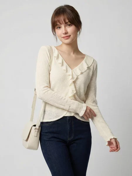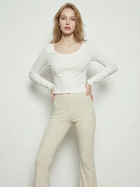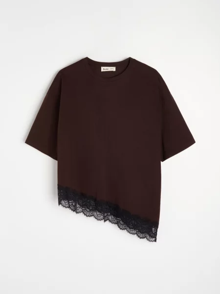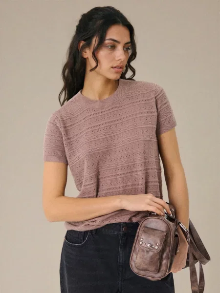 Sinsay Трикотажна блузка з ажурним візерунком і домішкою льону кавовий