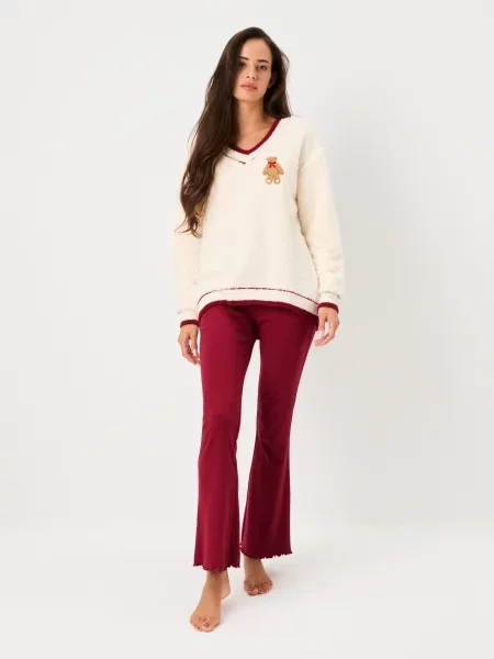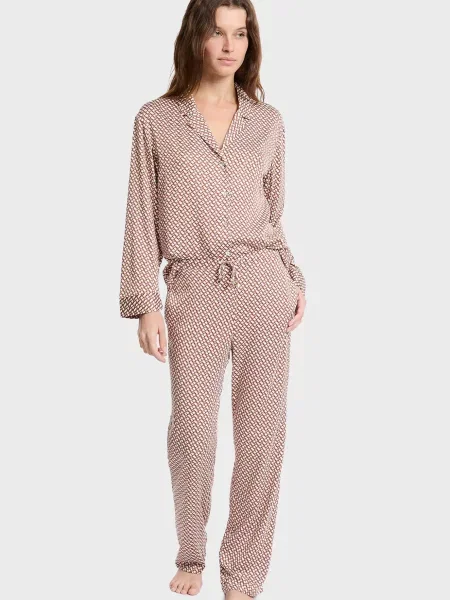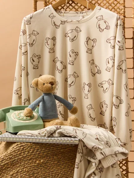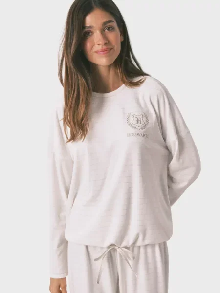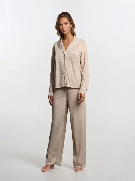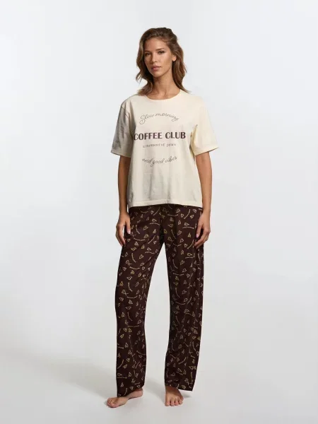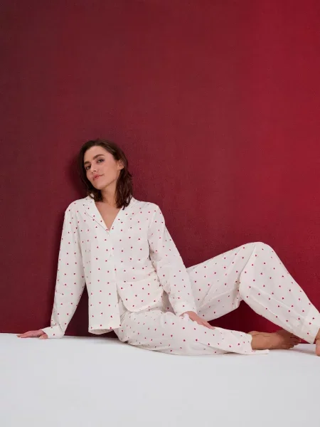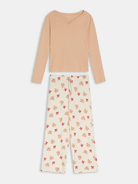 Sinsay Піжама з довгим рукавом і штанами з легкої тканини Barbie кремовий