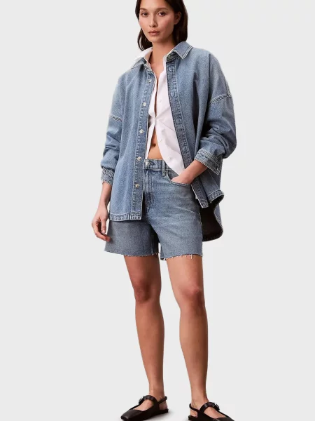 Блакитні жіночі джинсові сорочки