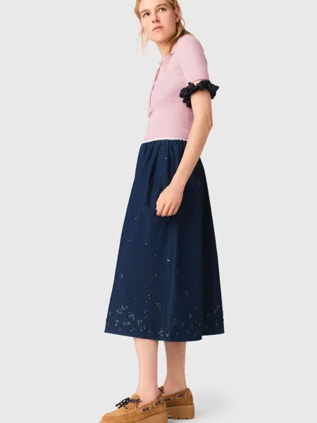 Джинсова спідниця Open Front Embroidered Maxi Denim