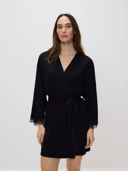 Sinsay Халат у квіти з мереживною обробкою Bridgerton
