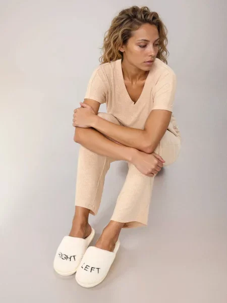 Капці зі штучним хутром і вишитим написом кремовий