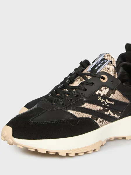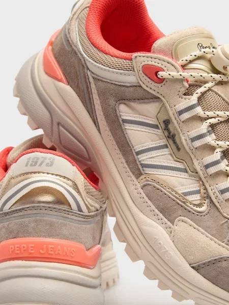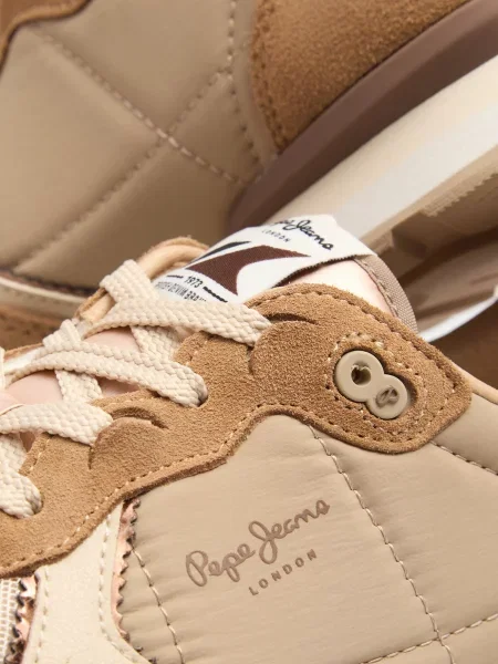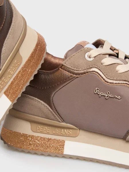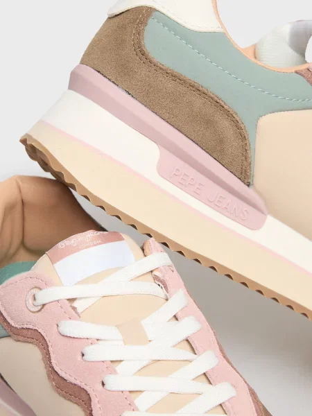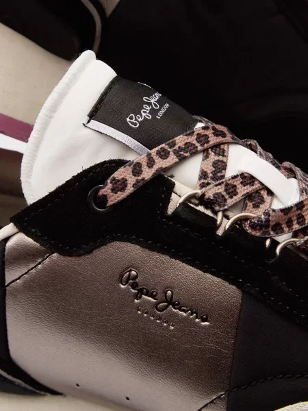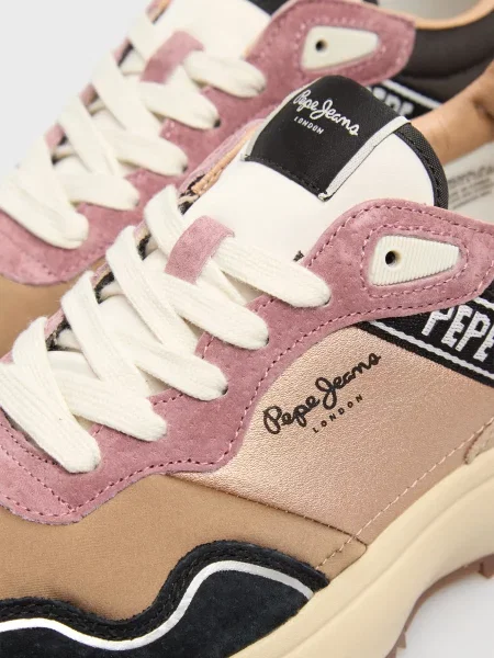 Ці моделі легко впізнати: багатошаровість, поєднання деніму, замші, натуральної шкіри та текстилю виглядає виразно, але не перевантажує. Яскраві акценти на язичках й п’ятках, фірмові логотипи Pepe Jeans London — деталі, які легко впізнавати здалеку і які додають взуттю руху та індивідуальності. Фактурні комбінації та декоративні нашивки розставляють влучні акценти, але все виглядає цілісно і стильно.