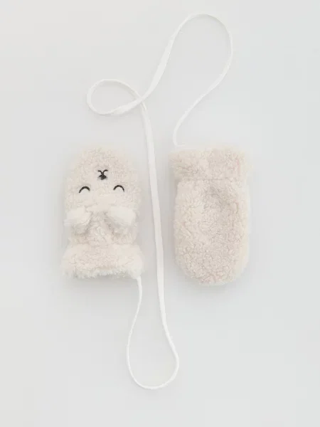 Рукавички-мітенки на шнурку кремовий