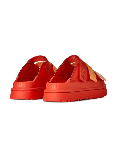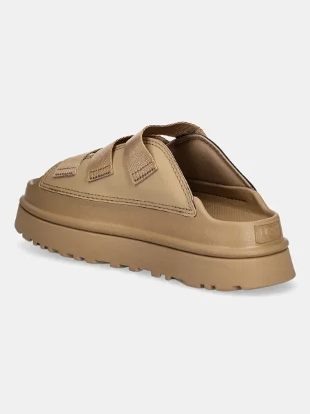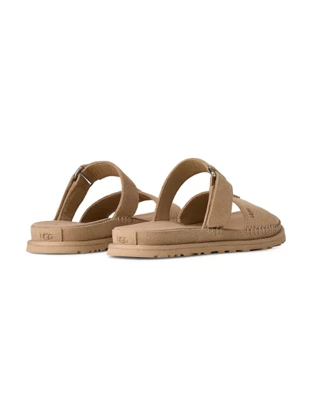 Особлива історія — піноматеріал SugarSole, виготовлений з екологічних складників. Він відповідає за легкість, пом’якшення під час ходьби та чудове зчеплення. Чи то шльопанці UGG золотий зоряний стиль, чи популярніші мінімалістичні моделі — кожна пара балансує між приємним на дотик верхом і витривалою підошвою. Додаємо до цього литу устілку з м’якою амортизацією та ремінці з логотипом бренду — і рецепт ідеальних шльопанців готовий.
