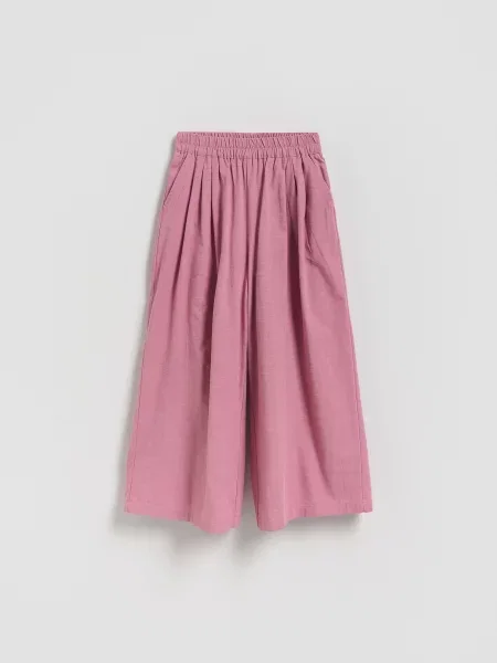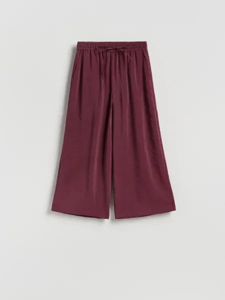 Жіночі штани Reserved шиють із різноманітних матеріалів: бавовна і суміші з еластаном для гнучкості, повітряний льон, віскоза, сучасні синтетичні тканини з додаванням поліестеру. Колекції зі штучної шкіри додають характеру та фактури.