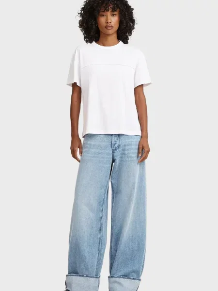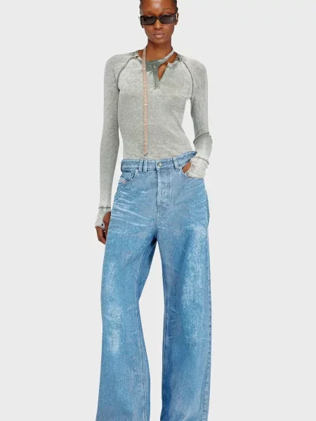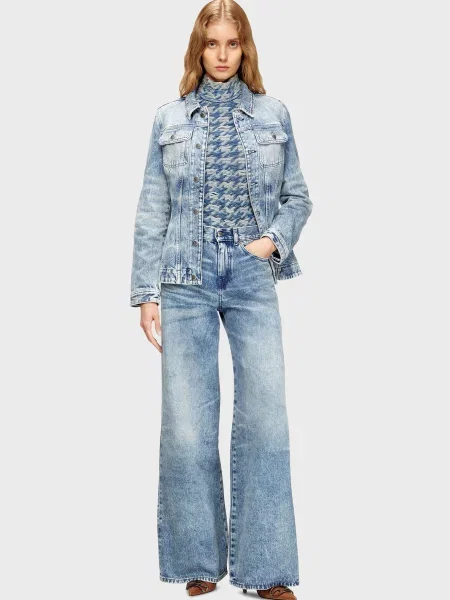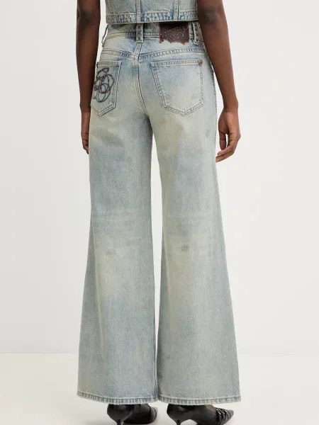 - Широкі джинси з потертостями