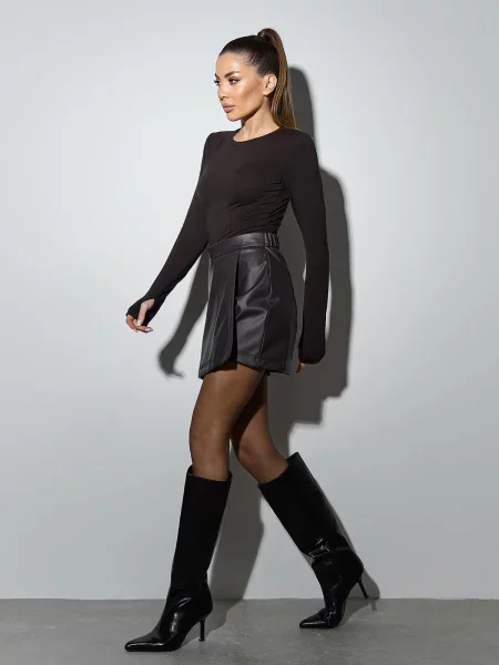 Спідниця-шорти ISSA Plus темно-коричневий екошкіра коричнева