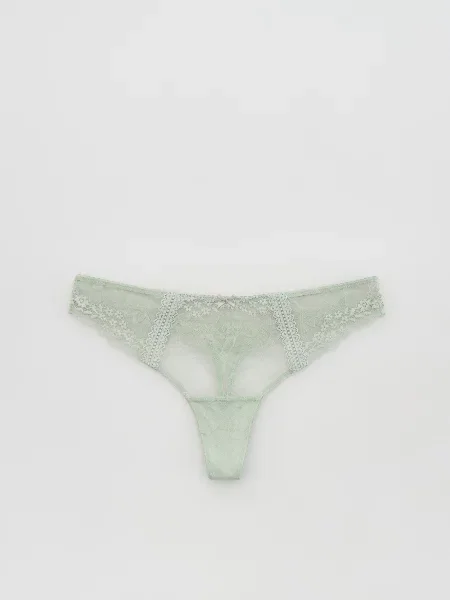 Стрінги з мережива блідо-зелений