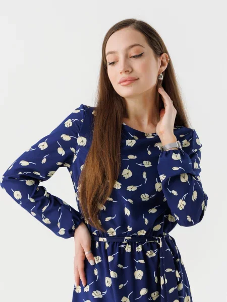 Сукня міді Темно-синій Поліестер/еластан