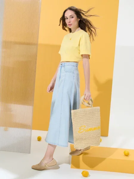 Плетена сумка-шопер кремовий