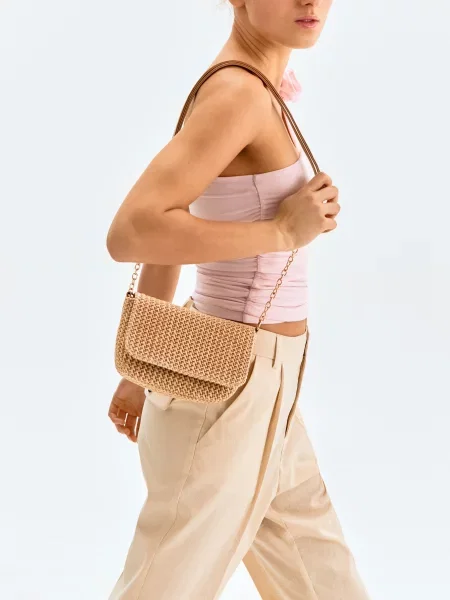 Сумка з плетеним візерунком і декоративним ланцюжком пастельний