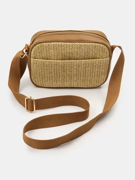 Мала плетена сумка з регульованим ремінцем кремовий