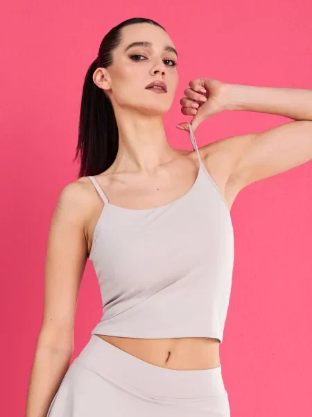 Sinsay Спортивний топ на бретельках з виймаються чашками Gym Hard нюдовий