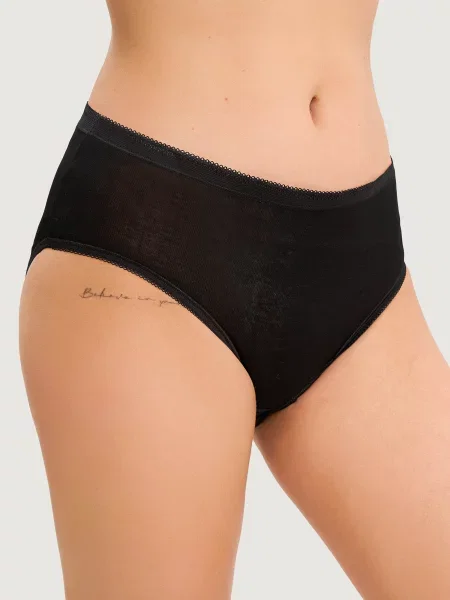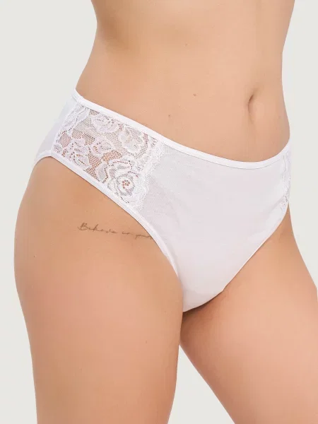 Якщо ви вважаєте, що зручна білизна має бути нудною, ми спростуємо вашу помилку. Окрім численних фасонів, ви можете обрати моделі з різними вставками. Досить популярними є бавовняні жіночі трусики з елементами мережива. Ви можете вибрати білизну з подолом з цього матеріалу або з більшими вставками, наприклад, спереду. Мереживо в такому виконанні містить еластичні волокна, що робить його більш міцним. Таку білизну можна купити у багатьох магазинах або замовити у нас на сайті, аби підкреслити свою жіночність.