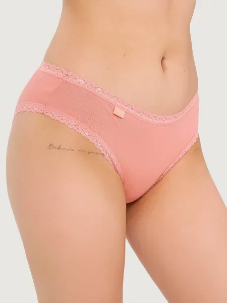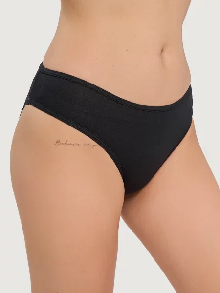 Якщо ви любите повітря, обирайте бавовняні трусики з елементами тюлю. Як би незвично це не звучало, але моделі, які ви знайдете тут, здивують вас своїм кроєм і поєднанням матеріалів. Крім того, красиві кольори та фасони гарантують, що ваша білизна ніколи не буде нудною. А якщо ви цінуєте сексуальні аксесуари, зверніть увагу на бічні трусики з бавовни та мережива з тонкою декоративною резинкою. Ця модель чудово підкреслить ваші довгі ноги та стегна.